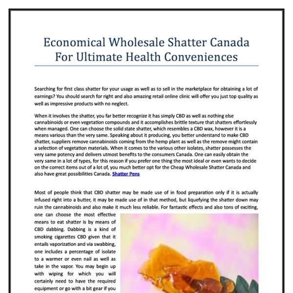 Economical Wholesale Shatter Canada For Ultimate Health Conveniences.doc