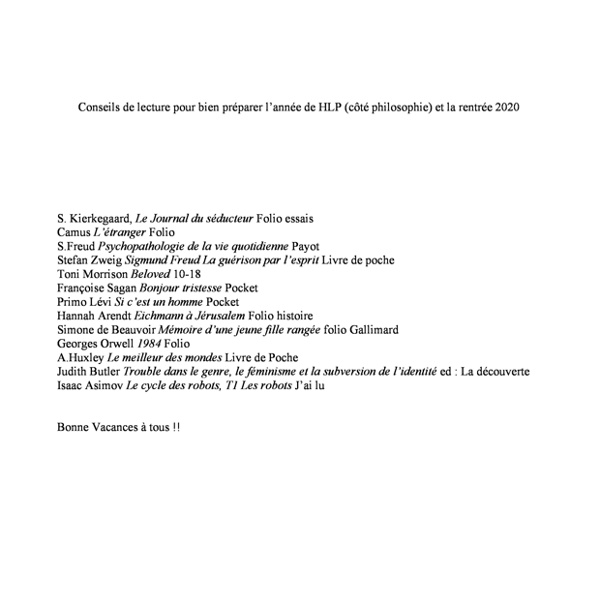 Specialite HLP 1re-Term Conseils de lecture en philosophie