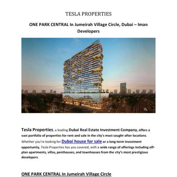 ONE PARK CENTRAL In Jumeirah Village Circle By Tesla Properties providing Dubai house for sale.pdf