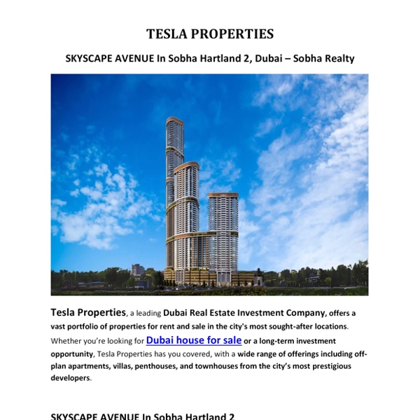 SKYSCAPE AVENUE In Sobha Hartland 2 By Tesla Properties providing Dubai house for sale.pdf
