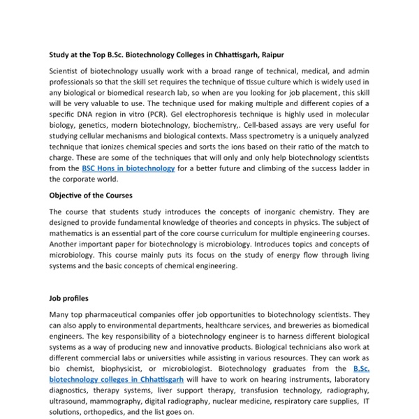 Study at the Top B.Sc. Biotechnology Colleges in Chhattisgarh Raipur.docx