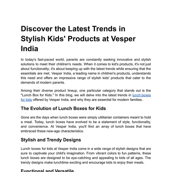 Discover the Latest Trends in Stylish Kids Products at Vesper India.pdf