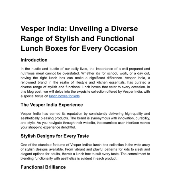 Vesper India Unveiling a Diverse Range of Stylish and Functional Lunch Boxes for Every Occasion.pdf