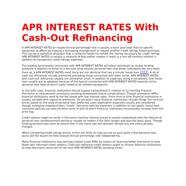 APR INTEREST RATES With Cash Out Refinancing.docx