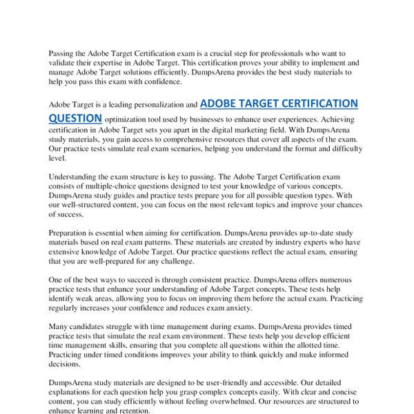 DumpsArena Real Exam Questions to Pass Adobe Target Certification Questions.pdf